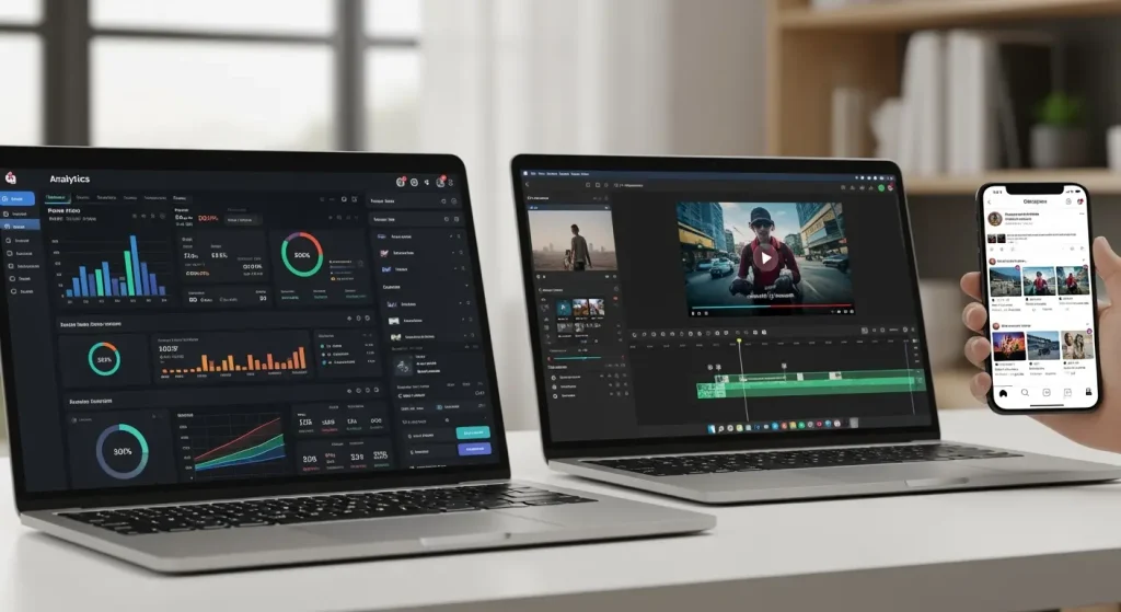 aprobでは、Instagram、TikTok、YouTubeなどのSNS運用をトータルでサポートします。アカウント開設から日々の投稿、動画制作、データ分析、ユーザーとのコミュニケーションまで、目的や状況に合わせて柔軟に対応。SNSを活用した認知拡大や集客、ブランド力向上を支援します。